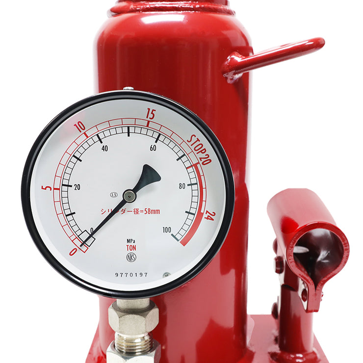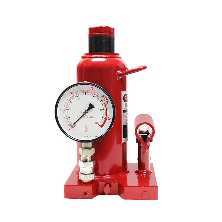Bottle Jack with pressure gauge,20 ton capacity, steel base.