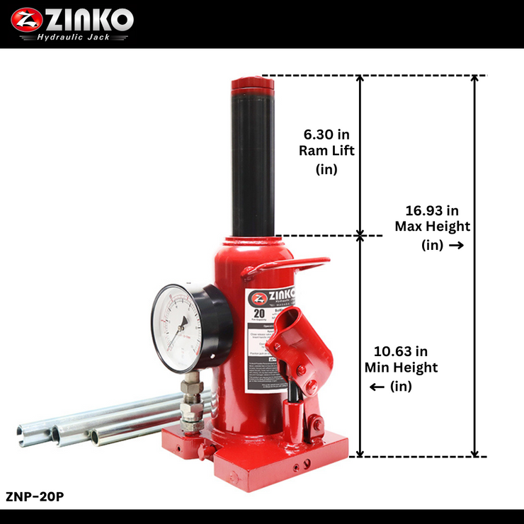$0.00STEEL BASE BOTTLE JACK - 20 TON W PRESSURE GAUGE; MODEL: ZNP-20P