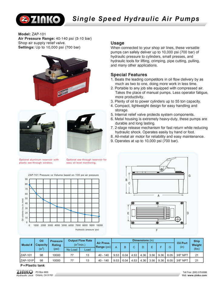 - Options: Reservoir with see through windows, or plastic reservoir will be available upon request. (Item no. 22-101V or 22-101P)