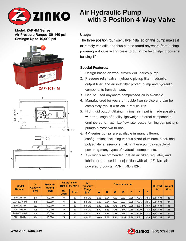 - Options: 3-way valve or 4-way 3-position valve with remote control hand pendant available upon request. (Item no. 22-101-1M or 22-101-4M)